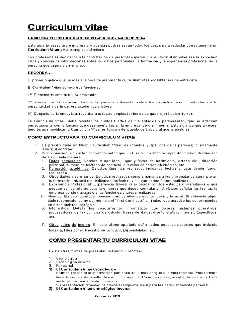 Existen tres maneras de presentar un curriculum vitae. Un video que explica en 6 pasos lo que hay que hacer y lo que no para tener un buen curriculum para presentar al. Elementos de un cv.